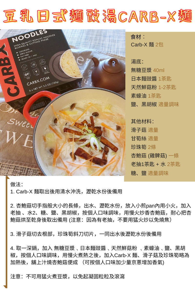 CARB X Noodles是低碳水化合物和100%植物製造,替代普通麵條!